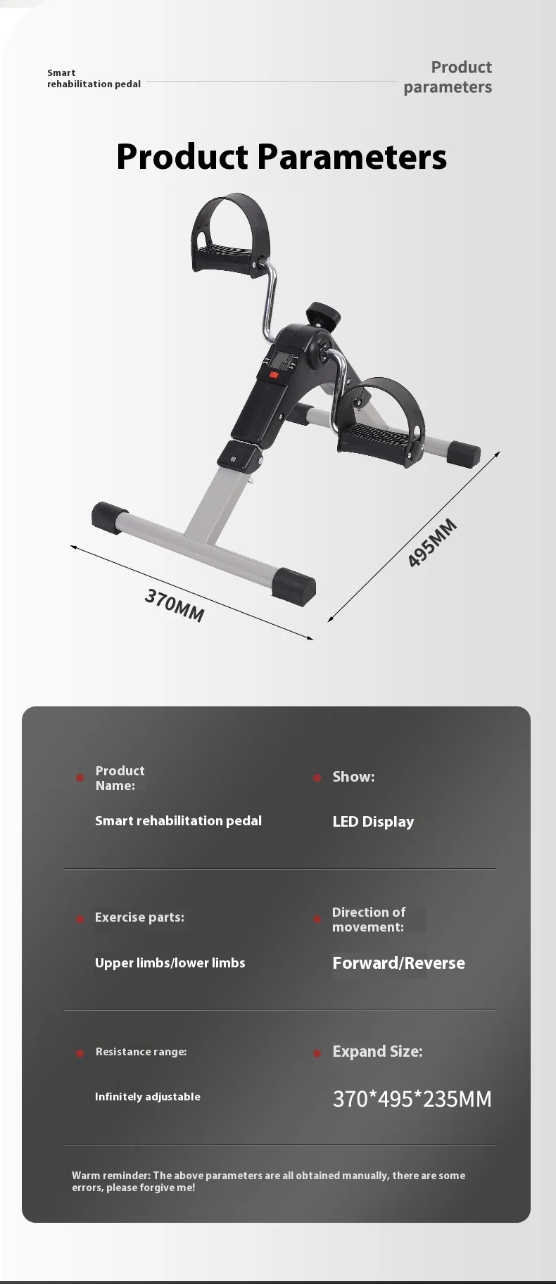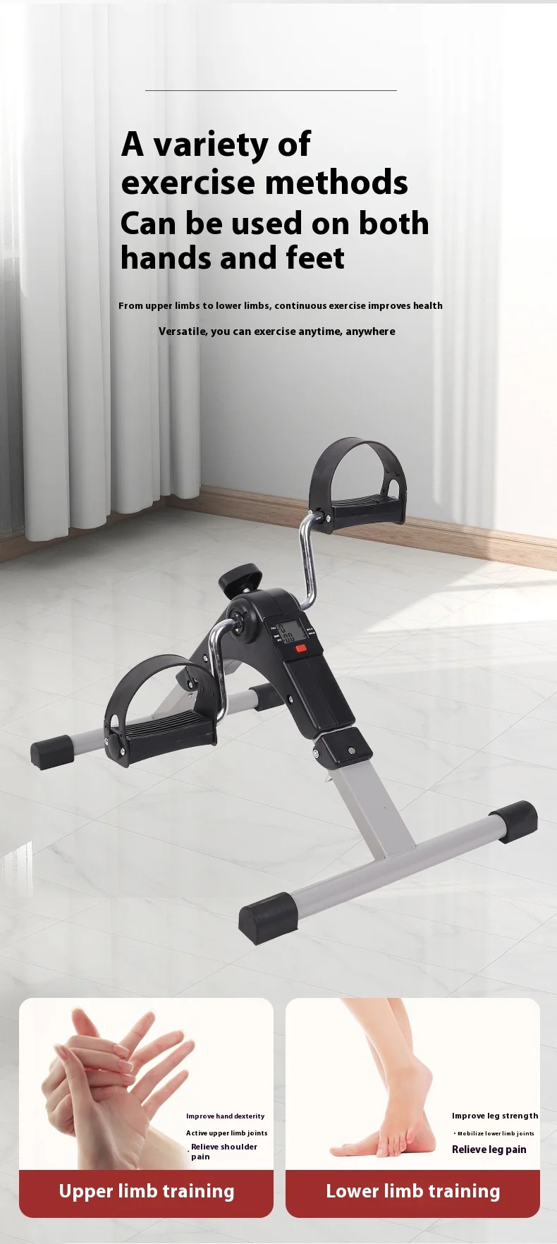 Foldable Stepper Machine for Home Use, Leg Fitness Trainer, Rehabilitation Training Pedal Bike, Mini Exercise Bike, Small Size